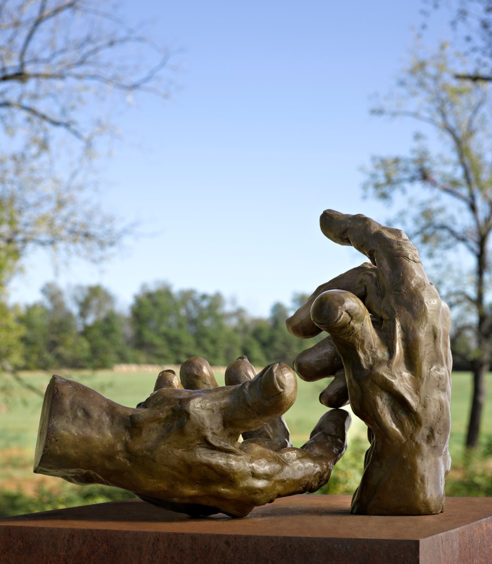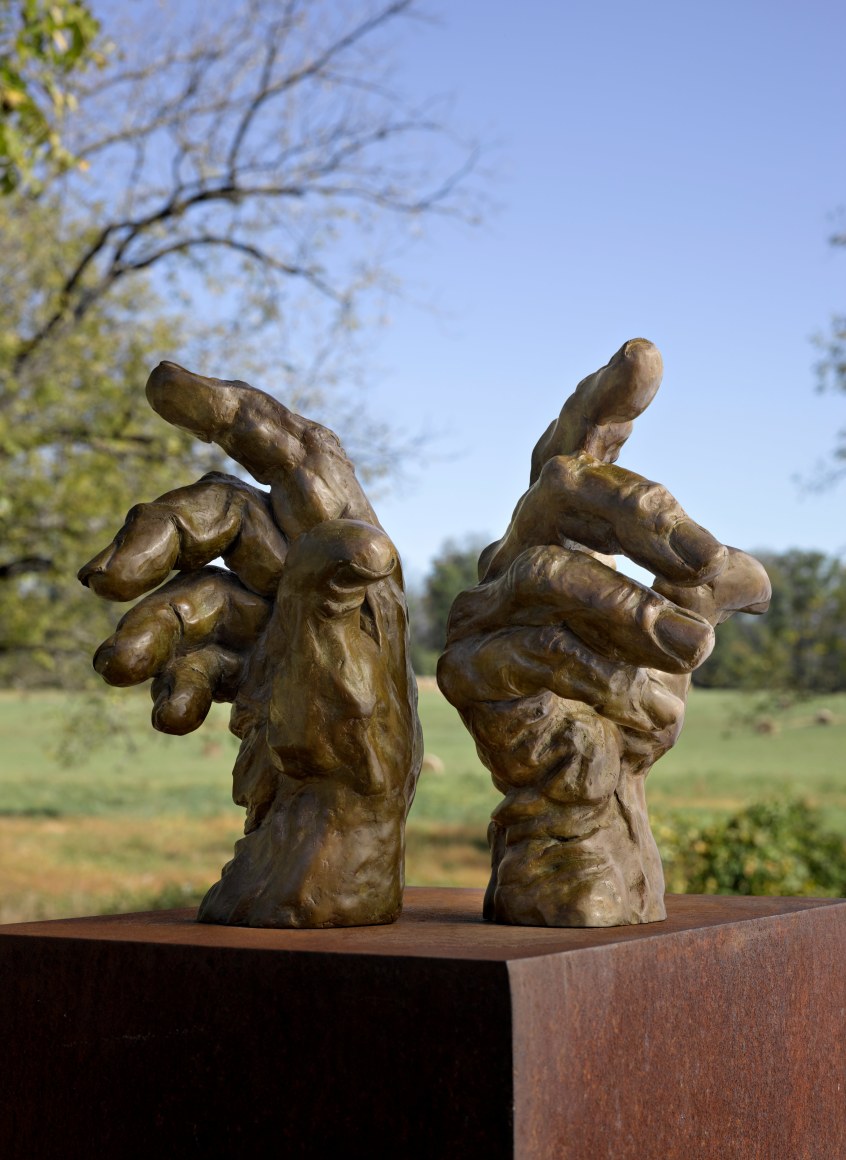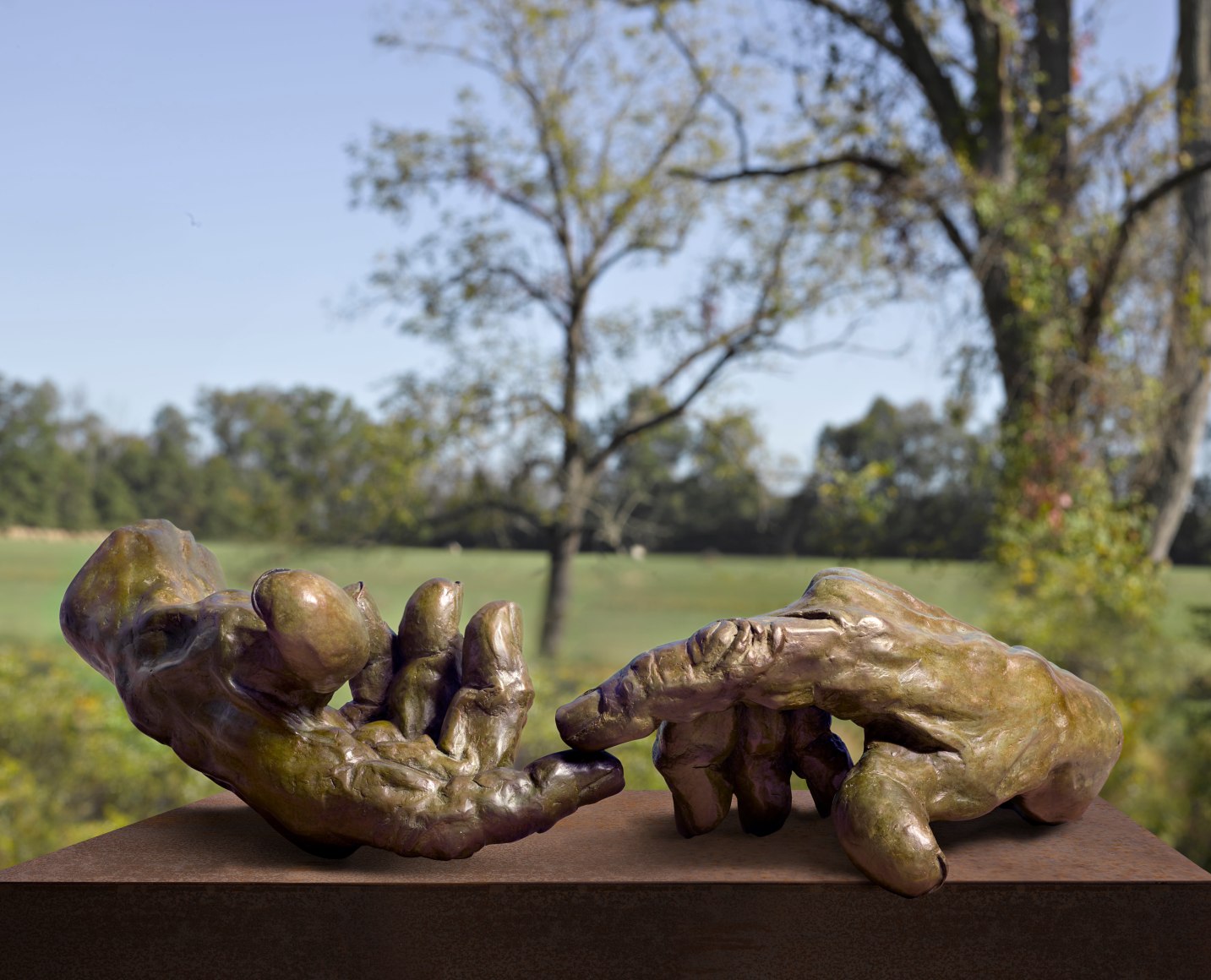 The two oversized hands were cast individually. Their independence provides the possibility of placing them in different positions, orientation and distance. The space between them tells the story of two people’s relationships. Every change creates a different sculpture, each with its own emotional impact.